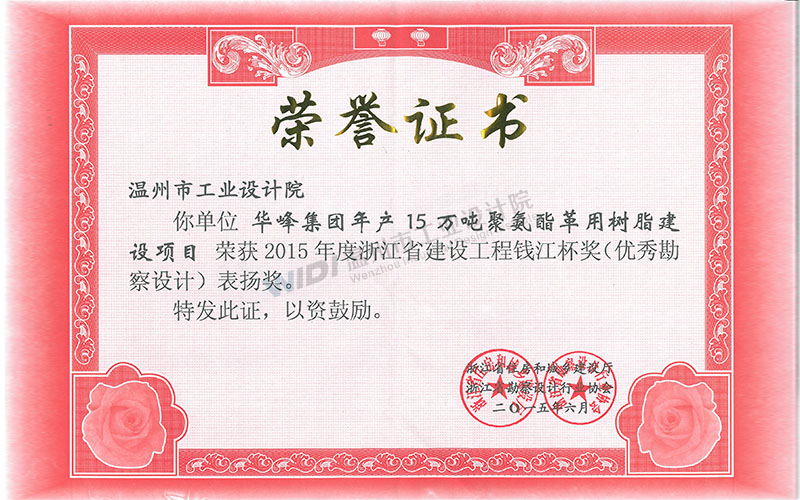 華峰集團(tuán)年產(chǎn)15萬(wàn)噸聚氨酯革用樹(shù)脂建設(shè)項(xiàng)目建設(shè)工程 錢江杯表?yè)P(yáng)獎(jiǎng)
