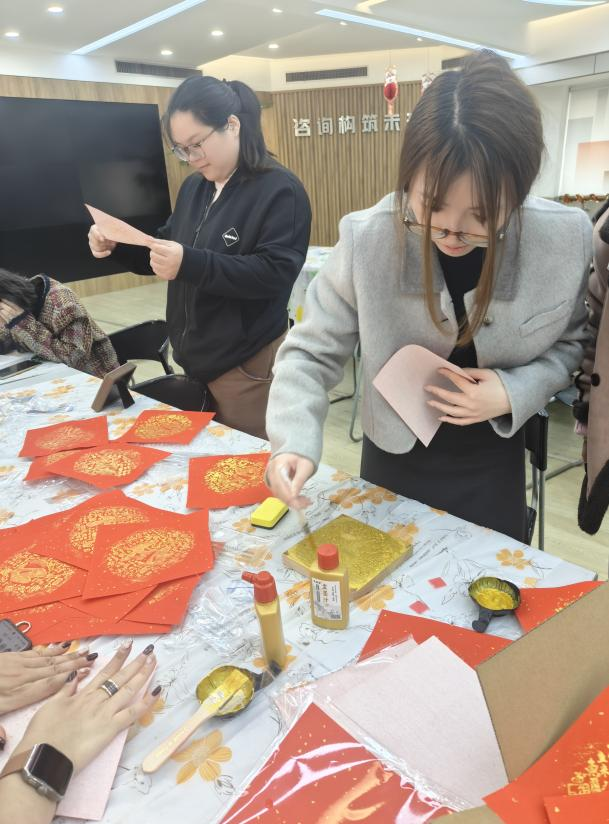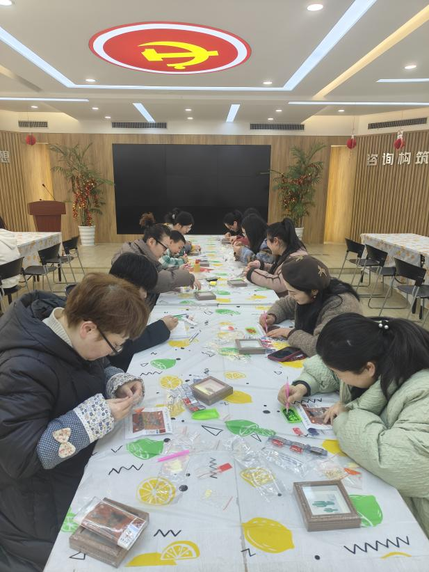 活動(dòng)現(xiàn)場(chǎng),布置得溫馨且喜慶,燈籠高掛、春聯(lián)映目、年花簇?fù)?,處處洋溢著濃郁的?jié)日氣息。全體員工熱情響應(yīng),踴躍參加。活動(dòng)伊始,大家有序簽到并領(lǐng)取了手工DIY所需的材料。此次活動(dòng)準(zhǔn)備了多個(gè)富有傳統(tǒng)文化韻味的手工項(xiàng)目。福字 DIY 鉆石貼區(qū),員工們專注地將一顆顆閃耀的鉆石鑲嵌在特制模板上,在細(xì)致操作中,寓意吉祥的福字逐漸成型;“家和萬(wàn)事興”“百福圖” 數(shù)字油畫 DIY 區(qū)域,大家依據(jù)數(shù)字標(biāo)識(shí),用畫筆為畫布填充色彩,每一筆都飽含著對(duì)美好生活的期許。木版年畫拓印手工 DIY 處,員工們先將宣紙輕柔覆蓋在刻有精美圖案的木版上,再用蘸滿顏料的刷子均勻刷過(guò)紙面,隨后小心翼翼地揭開宣紙,一幅幅承載著歷史記憶與美好寓意的木版年畫便躍然紙上 。經(jīng)過(guò)一個(gè)多小時(shí)的創(chuàng)作,一幅幅精美的手工作品陸續(xù)誕生。這些作品不僅展示了員工們的才華和技藝,更凝聚了大家的智慧和汗水。