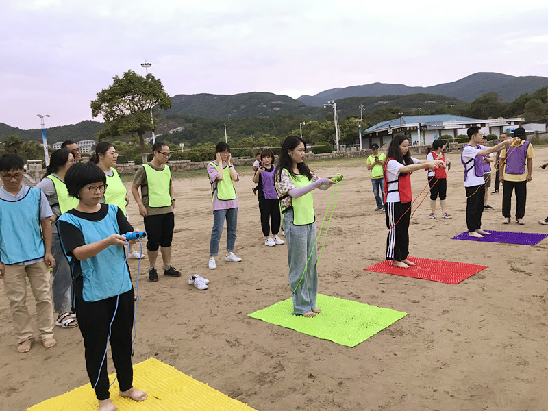 “破冰行動”首先拉開活動序幕,“破冰”即打破員工之間的拘謹(jǐn)和束縛,尤其是兩家單位的陌生感,讓他們在接下來的活動中能積極的參與進(jìn)來。簡單的自我介紹認(rèn)識之后,隊(duì)伍分成四組進(jìn)行競賽,“躲避球”考驗(yàn)的是團(tuán)隊(duì)的整體協(xié)調(diào)配合能力;“救生圈接力賽”在裁判的一聲令下,全員接力比賽決勝負(fù),緊張之余又趣味十足;“指壓板跳繩”難度系數(shù)高,讓隊(duì)員們摩拳擦掌,紛紛上場較量各隊(duì)實(shí)力,一起“腳”逐快樂;“聽歌識曲”輪番播放不同年代歌曲讓大家回憶經(jīng)典同時能猜出歌名。現(xiàn)場活動熱烈,參與人員熱情高漲,笑聲不斷。